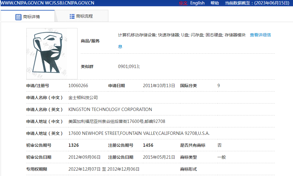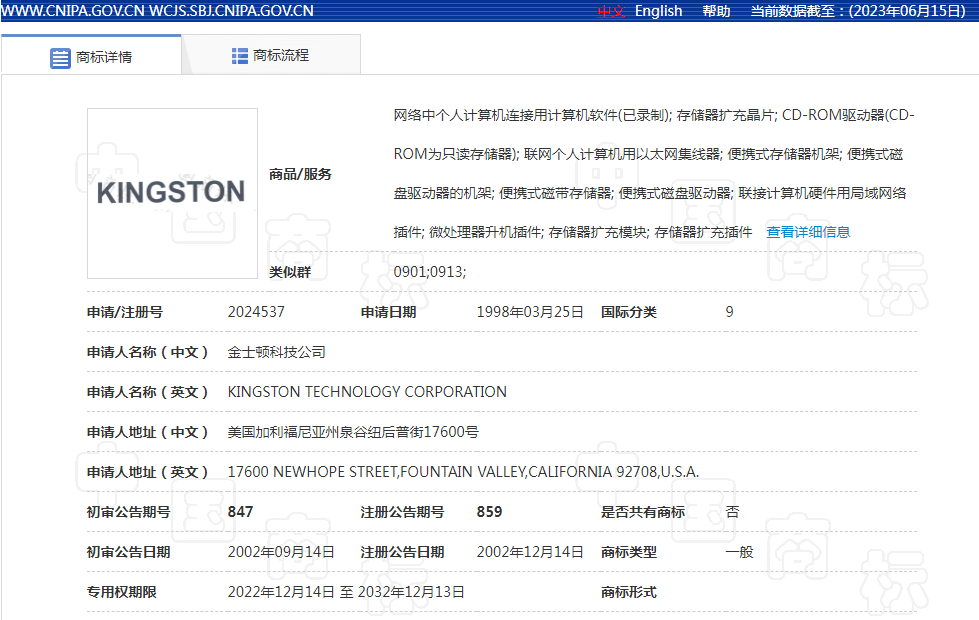 经查询,金士顿科技有限公司拥有“KINGSTON”等多件注册商标专用权,其中第2024537号“KINGSTON”商标、第10060266号图形商标是常被人搭蹭、攀附的商标标识。