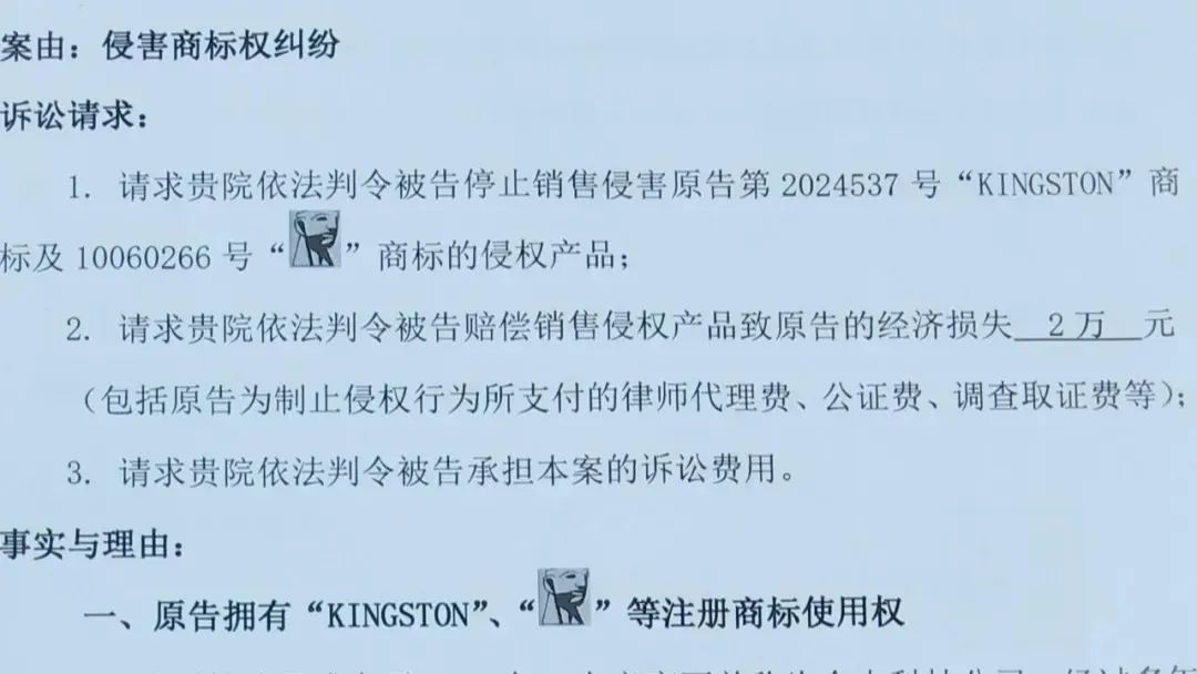 但法院同时指出,被控侵权商品的外包装及商品外观标识,与第2024537号商标“KINGSTON”的字母一致,仅大小写和字体不同,以相关公众的一般注意力难以区分。最终,昆明中院酌情判定由被告赔偿原告“合理维权费2000元”,并驳回原告其他诉讼请求。