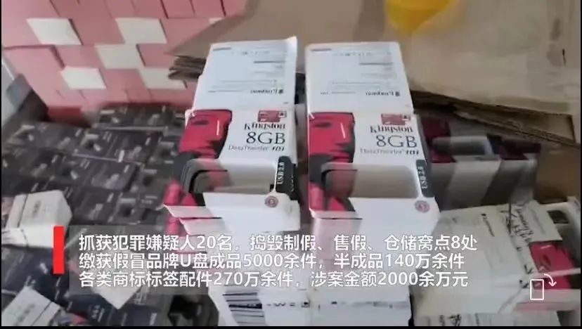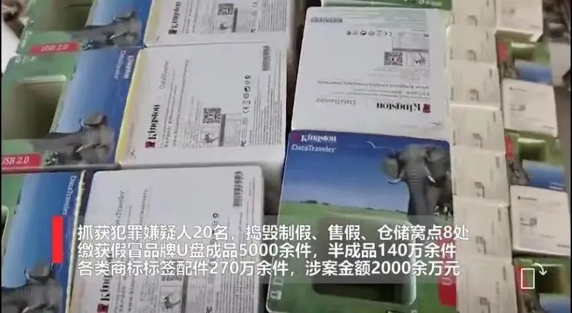 2020年12月,上海浦东警方捣毁一制售假冒金士顿U盘的犯罪团伙 来源:上海发布