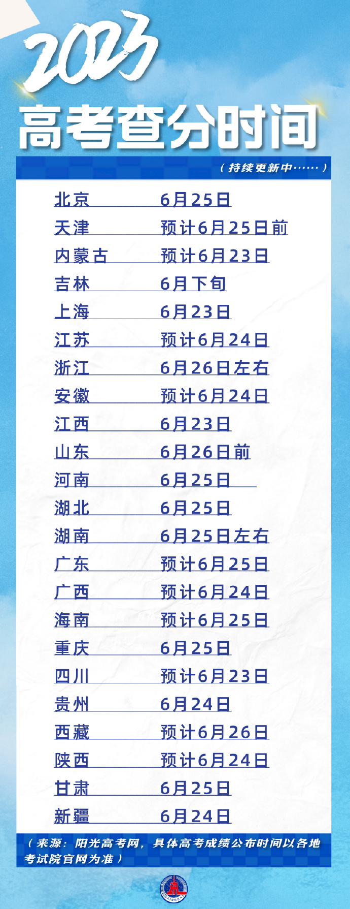 23地高考发榜时间,一图速览!