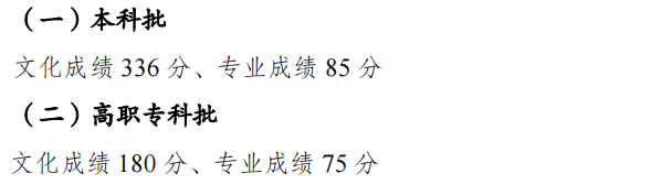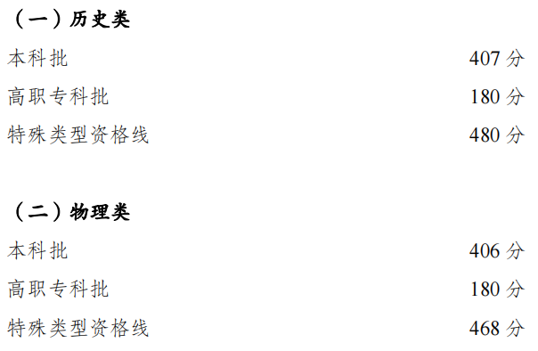 理工类第一批本科:459 分;第二批本科:371 分;高职(专科):180 分。