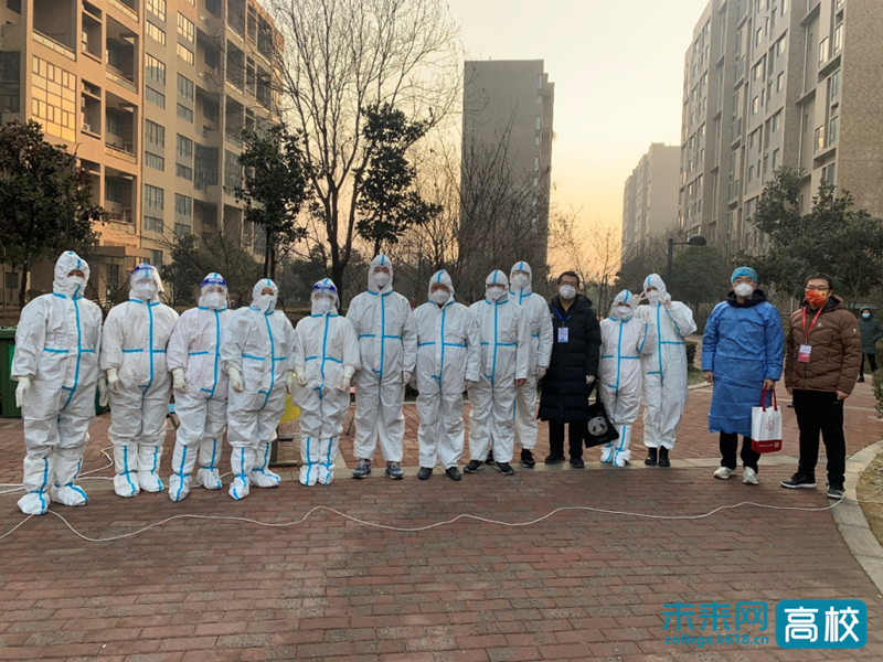 检测过程中,所有检测人员都身着防护服,为了节约医疗物资,避免让大家在寒风中等待,志愿者几乎不吃饭、不喝水,连续工作直到检测结束。也正因为有了他们的坚守,西电疫情防控工作才有了坚强保障。