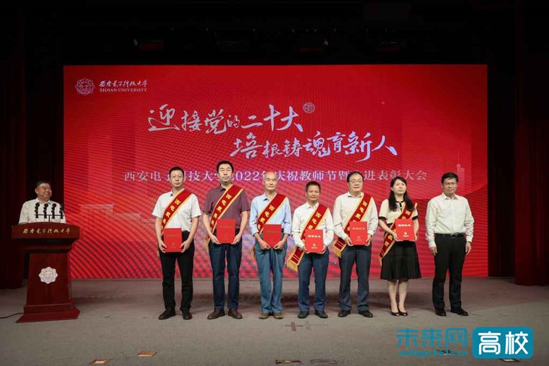 9月8日下午,西安电子科技大学举行2022年庆祝教师节暨先进表彰大会。该校党委书记查显友向全体教职工送上节日的祝福,希望大家坚守初心使命,努力培养担当民族复兴大任的时代新人,勇担服务国家高水平科技自立自强使命。党委副书记、副校长任小龙宣读表彰决定。党委副书记、纪委书记任应坤,副校长石峰、林松涛为受表彰代表颁发荣誉证书。会议由学校党委副书记杨银堂主持。