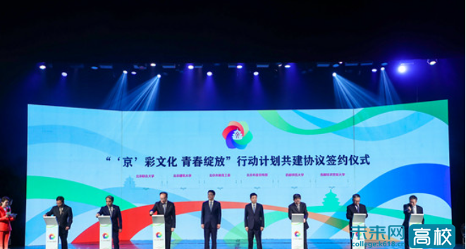 活动现场,北京市委宣传部、市委教育工委与16所试点高校签订合作共建协议,确保“一校一策”,推动《行动计划》落细落实,孟繁华代表学校签约。签约仪式后,北京市委常委、教育工委书记游钧,北京市委常委、宣传部部长莫高义为学校大学生代表授予“‘京’彩文化 青春绽放”行动计划旗帜。首都师范大学音乐学院研究生王婉怡与北京民族乐团演奏家朱鹏宇共同表演琵琶、古筝二重奏《春江花月夜》。