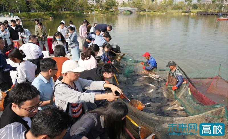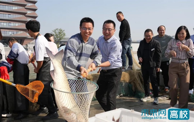 金秋十月,丹桂飘香。在庆祝学校办学109周年之际,10月16日,嘉兴学院“鱼跃虹源,喜迎校庆;美好‘食’光,‘鱼’您共享”捕鱼活动在梁林校区虹源湖畔举行。党委委员、纪委书记、省监委驻嘉兴学院监察专员陈新友,党委委员、副校长(主持日常工作)张琦出席活动。副校长周宏伟主持启动仪式。师生代表、后勤职工等参加相关活动。