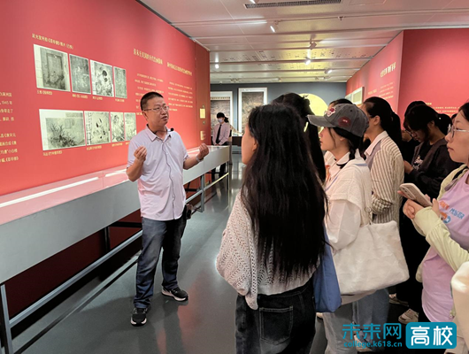 近日,嘉兴美术馆“盛世修典——‘中国历代绘画大系’成果展?嘉兴特展:古代人物画与服饰生活”展览现场,嘉兴学院中国历代绘画大系研究中心陈荣军副教授又一次化身“特约讲解员”,以一幅幅画为例,向前来参观学习的嘉兴学院汉语言文学专业2023级新生深入细致地讲述了中国古代服饰的发展历程与时代特色。