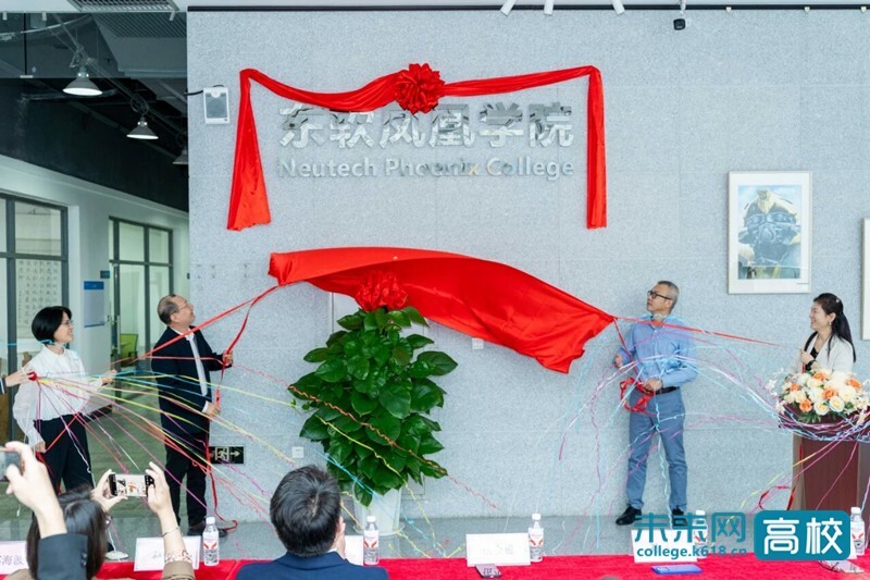 在全场老师们的共同见证下,仪式进入核心环节——揭牌仪式。学校校长孙伟、党委书记伍少德、财务总监白露、继续教育学院兼东软凤凰学院院长邓海波共同上台,为广东东软凤凰学院揭牌。随着红绸落下,“广东东软凤凰学院”正式亮相。
