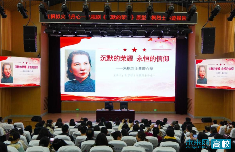 报告会特邀朱枫烈士孙女、国防科技大学思政课指导专家朱容瑢老师主讲。朱容瑢老师深情回溯了朱枫烈士在隐蔽战线的革命足迹,展现了祖母朱枫烈士在战火纷飞年代坚定投身革命、坚贞不屈、视死如归的崇高气节,生动诠释了“红枫似火照丹心”的精神内核,让在场师生深切感受到革命先辈在面临生死考验时展现出的坚如磐石的信仰、视死如归的忠诚和百折不挠的意志,深刻理解了共产党人矢志不渝的初心使命。