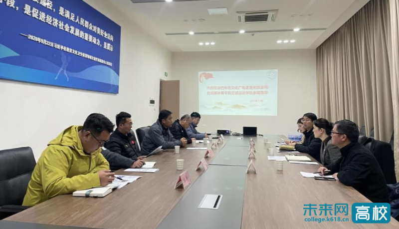 12月9日,巴中市文化广电体育和旅游局党组书记、局长张杰,副局长陈明,人事科科长夏晓槐,市业余体校副校长刘统兵等一行前往成都体育学院足球运动学院开展专题调研。学校党委常委、组织部部长郑宇,教务处处长李明达,足球运动学院院长李畔,副院长李增民以及相关科室负责人参与了交流座谈。
