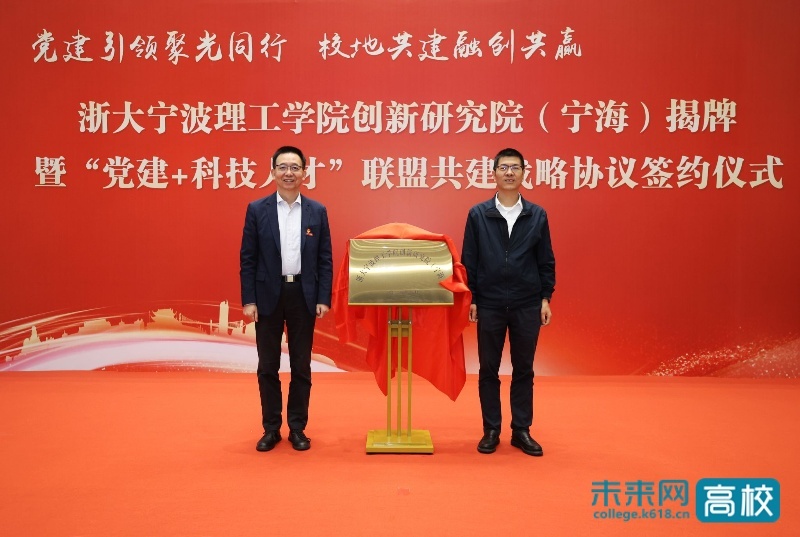 12月10日下午,浙大宁波理工学院创新研究院(宁海)揭牌暨“党建+科技人才”联盟共建战略协议签约仪式在宁海举行。浙大宁波理工学院校长杨德仁,宁海县委书记滕安达共同为研究院揭牌,标志着校地合作迈入深度融合新阶段。宁海县委常委、组织部部长陈立蒙出席并致辞。