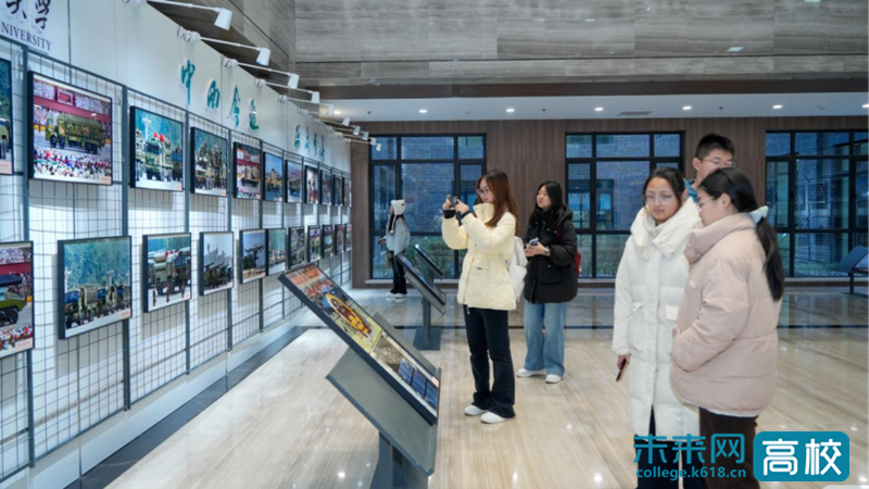 开幕式后,与会嘉宾和师生代表共同前往求真楼一楼大厅观展。大家在一幅幅展现阅兵方阵、新型武器装备等场景的经典影像前驻足观看。