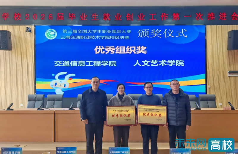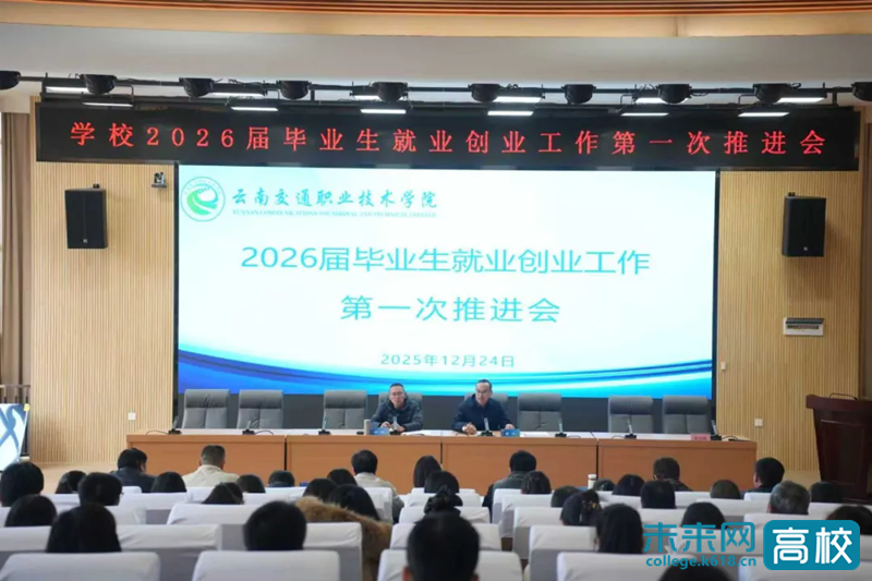 12月24日,云南交通职业技术学院召开2026届毕业生就业创业工作第一次推进会暨第三届职业规划大赛校赛表彰仪式。学校党委书记晏杉,党委委员、副校长周舟出席会议并讲话。学校就业创业工作领导小组成员,各学院书记、院长和分管就业工作负责人,毕业班辅导员,招生与就业指导处全体人员参加会议。会议由周舟主持。