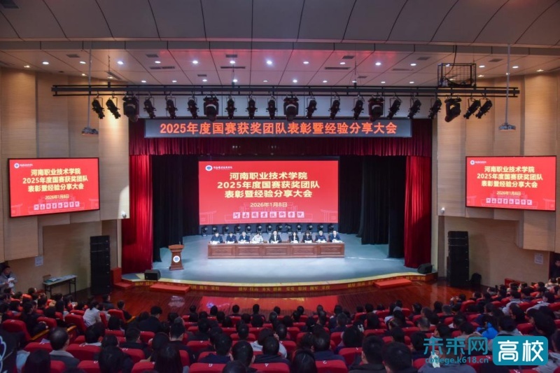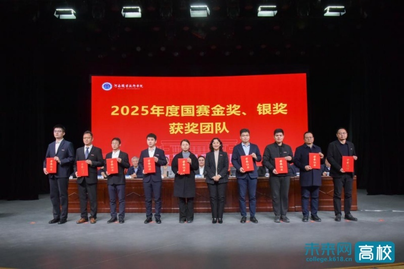 1月8日下午,河南职业技术学院召开2025年度国赛获奖团队表彰暨经验分享大会,对在世界职业院校技能大赛、中国国际大学生创新大赛、全国大学生职业规划大赛、“挑战杯”全国大学生课外学术科技作品竞赛、中华人民共和国第三届职业技能大赛中获奖的项目团队进行表彰。学校领导厉励、夏新颜、田华、肖珑、李玉峰、盛兴文、任枫轩、鲁冬出席会议。学校副科级及以上干部、教研室主任、党支部书记及部分师生代表参加会议。会议由学校党委委员、副校长朱永宽主持。