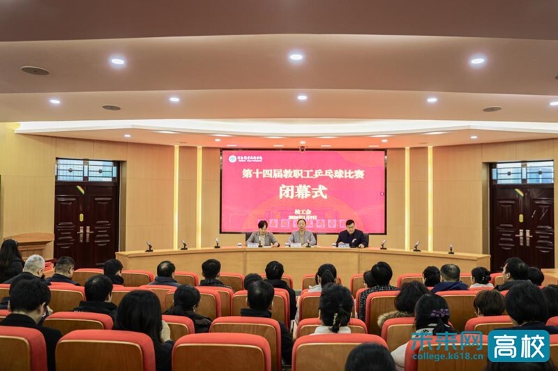 1月9日上午,河南职业技术学院第十四届教职工乒乓球比赛闭幕式举行。学校党委副书记、工会主席田华出席并为获奖团体和个人颁奖。学校工会、获奖分工会负责人、运动员、裁判员及教职工代表参加。