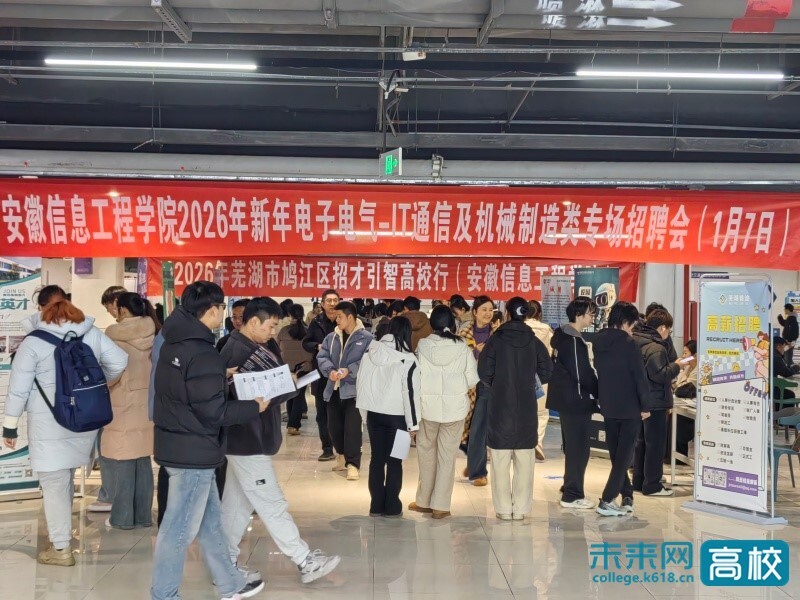 1月7日,安徽信息工程学院2026年“寒假促就业暖心系列招聘活动”首场校园双选会顺利举行。此次活动是学校深入贯彻党中央、国务院关于高校毕业生就业工作的决策部署,落实教育部关于开展2026届高校毕业生“寒假促就业暖心行动”的通知精神,抢抓寒假关键期,全力促进学校2026届毕业生更加充分、更高质量就业的系列举措之一。