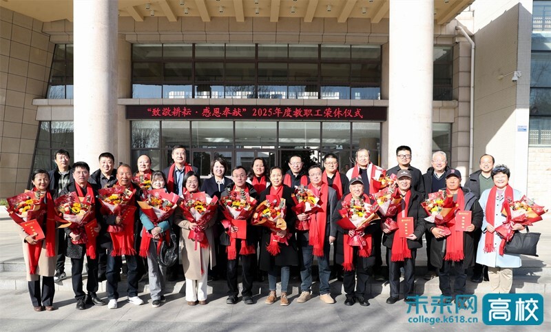 2025年,该校共有40位教职工荣休,其中专任教师27人、行政人员8人、教辅人员3人、工勤人员2人。荣休人员中,有77.5%教职工在校工作已超过30年。荣休仪式上,赵敏娟、李国武、强林飞、白红武为荣休教职工代表佩戴红色围巾并赠送鲜花与荣休证书,共同祝愿他们的人生新程温暖如歌,绚烂似花。