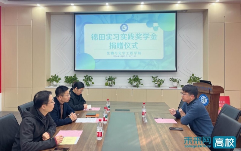 1月15日,浙大宁波理工学院生化学院举办“锦田实习实践奖学金”捐赠授牌仪式,宁波锦田塑胶有限公司总经理郑晨,浙大宁波理工学院生化学院党委书记刘哲、党委副书记、纪委书记芦美丽、副院长王进波共同出席了活动,见证校企合作的深化发展。