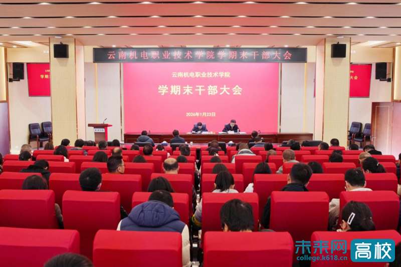 1月23日,云南机电职业技术学院召开寒假前中层干部会议,全面总结2025年工作,部署2026年重点任务。学校领导班子成员及全体中层干部参加会议。会议由学校党委副书记、校长沈韬主持,党委书记赵伟以“锚定新目标、聚力抓落实,以精细化管理服务推动学校事业高质量发展”为题作讲话。