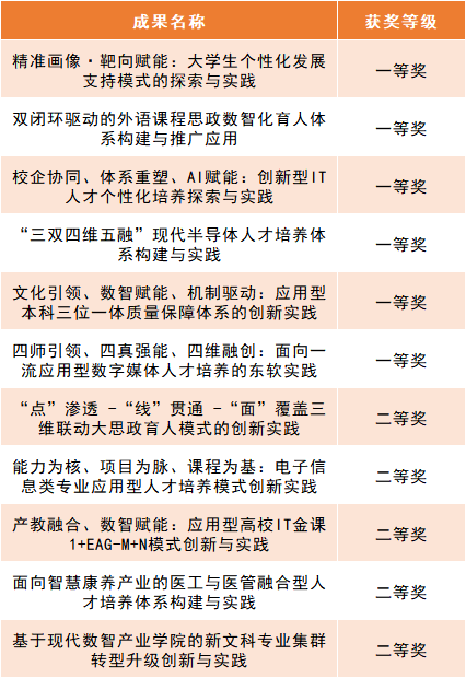 多年来,学校始终坚持立德树人根本任务,以培养高素质应用型人才为中心,紧扣数字经济发展与区域产业需求,以数智化转型引领教育教学创新,持续深化产教融合、校企合作,不断加强教育教学研究和改革力度,形成了一系列具有示范效应和推广价值的高水平教育教学成果。