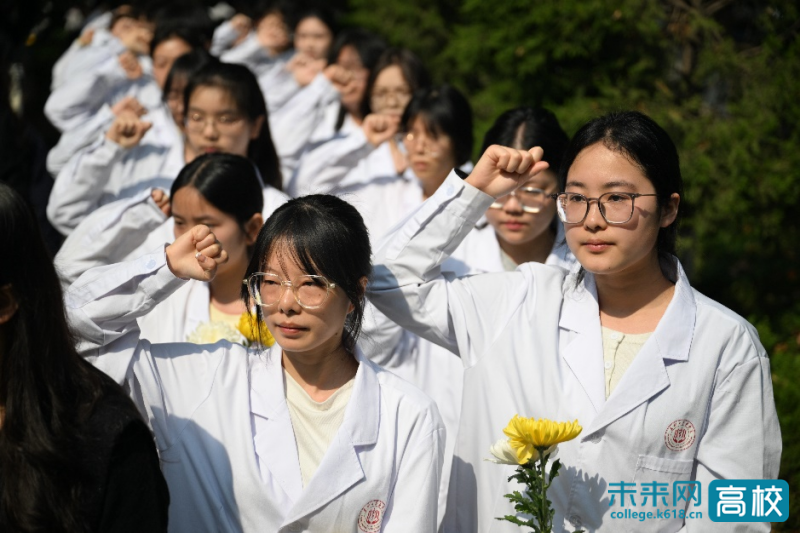 “健康所系,性命相托。当我步入神圣医学学府的时刻,谨庄严宣誓:我志愿献身医学,热爱祖国,忠于人民……”医学生代表举起右拳,用铿锵誓言彰显医者初心,承诺将以精湛医术与高尚医德,不负“无语良师”的无私馈赠。