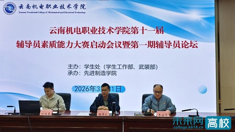 3月31日下午,云南机电职业技术学院第十一届辅导员素质能力大赛启动会暨首期辅导员论坛举行。学校党委副书记伍学龙出席会议并讲话,学生处处长李佐平、各二级学院专职副书记及全体专职辅导员参加会议。