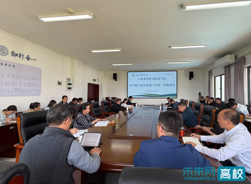 近日,云南水利水电职业学院召开办学能力迎评促建第三次推进会。学校党委书记马志宇,党委副书记、校长黄海燕出席会议并作工作部署。会议通报了第二阶段专项检查情况,指出当前存在的问题与困难,各部门汇报了工作开展情况及下一步工作计划。