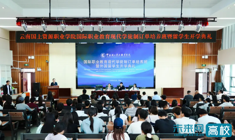 4月15日,云南国土资源职业学院国际职业教育现代学徒制订单培养班暨外国留学生开学典礼举行。海之晨集团董事长陈栋,学校党委副书记、校长陈颖,副校长张云霞出席典礼,学校相关职能部门、二级学院负责人及全体来华留学生共同参加活动。