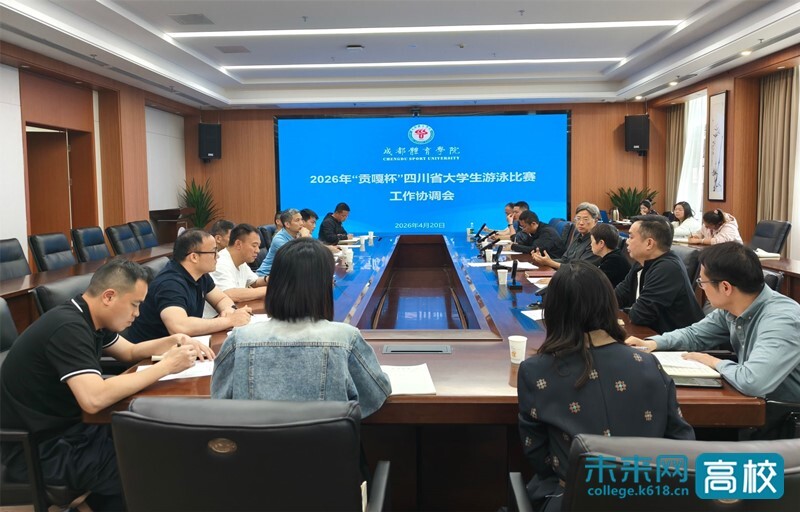4月20日下午,成都体育学院召开2026年“贡嘎杯”四川省大学生游泳比赛工作协调会。学校党委常委、副校长李林出席会议,相关职能部门负责人、体育教育学院党政负责人参会。会议由教务处/实验管理处副处长张萍主持。