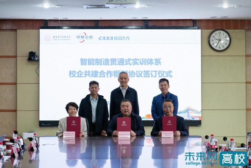 4月21日,西安电子科技大学与浙江环智云创科技有限公司、北京数码大方科技股份有限公司签订智能制造贯通式实训体系校企共建合作框架协议。校党委常委、副校长王泉与浙江环智云创董事长李水土、北京数码大方副总裁何伟进行座谈并见证签约。