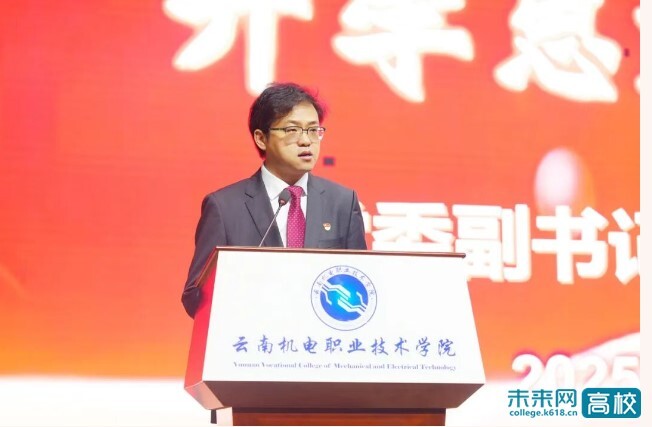 8月30日,云南机电职业技术学院2025级新生开学典礼暨党委书记、校长讲授“开学思政第一课”在杨林校区、龙泉校区南院举行。学校全体党委委员,二级学院、相关职能部门负责人,2025级全体新生及辅导员等参加典礼。典礼由学校党委副书记伍学龙主持。