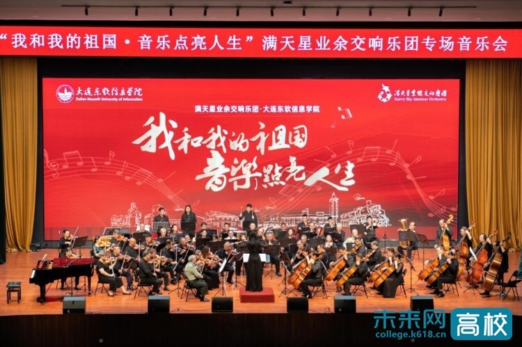 近日,“我和我的祖国·音乐点亮人生”满天星业余交响乐团专场音乐会在大连东软信息学院举行,东软睿新科技集团执行董事、CEO、总裁、大连东软信息学院副董事长、名誉校长温涛,大连东软信息学院校长郭权,党委副书记、副校长任昊出席活动。在震撼人心的音符交汇中,乐团全体演出人员为现场近千名师生开展了一堂美育思政大课。