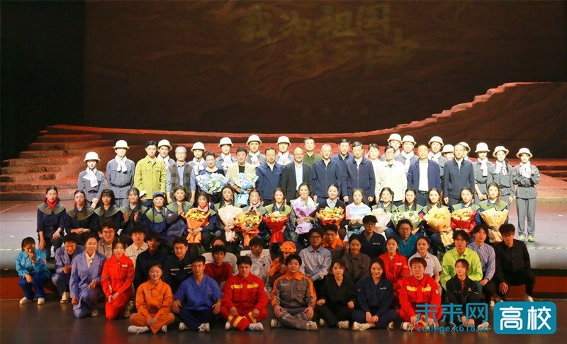 王进富在致辞中表示,9月25日是中国石油第75个纪念日,西安石油大学原创音乐剧《我为祖国找石油》的首场正式演出,不仅是一场艺术盛宴的呈现,更承载着回望石油事业奋斗史、传承石油精神的使命,同时也向新中国华诞献上诚挚礼赞。他表示,72年前,200名来自温州的青年学子响应国家号召,经过在学校的艰苦学习与实践,成为新中国石油测绘的中坚力量。其中由学校20余名毕业生组成的新中国第一支女子测量队,以“巾帼不让须眉”的豪情,奔赴祁连山麓、戈壁深处,顶风沙、战严寒,以精准测绘为我国石油勘探事业立下了赫赫战功,用实际行动书写了“我为祖国找石油”的青春誓言。他强调,本场音乐剧不仅再现了那段筚路蓝缕的创业岁月,更诠释了那一代青年人“把青春献给祖国”的坚定信仰。测量队员们身上闪耀着爱国、创业、求实、奉献的精神光芒,与铁人精神同根同源,共同构筑起西安石油大学“为祖国献石油”的报国初心。他表示,学校将积极推进“以文化人、以美育人”,通过音乐剧、音乐党课等艺术形式,推动红色基因、铁人精神入脑入心。他希望,要以女子测量队等老一辈西石大人为榜样,传承艰苦奋斗的优良作风,发扬敢为人先的创新勇气,引导广大师生坚定理想信念,争做新时代能源事业实干者、开拓者、奉献者,共同走好我们这一代人的石油路、创新路、奋进路。