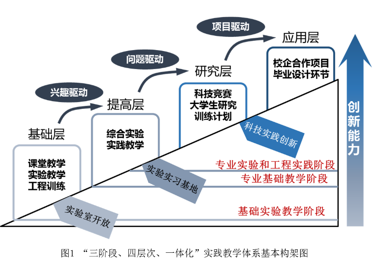 本专业在不断发展过程中,构建包括“基础实验、专业基础实验、专业实验”三阶段和“基础训练实验、综合性设计型实验、研究型实验、以项目为导向的应用研究”四层次的递进式开放创新实践教学体系,实践环节“四年不断线”,系统学生工程实践和创新能力。
