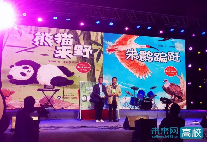 10月2日,中国作协会员、西安市作协散文委主任、西安财经大学文学院教师白忠德秦岭生态散文集《熊猫来野》《朱鹮翩跹》发布会在佛坪县体育场“遇见熊猫”・高校音乐汇上举行。白忠德现场分享创作初心与佛坪情怀,与佛坪县副县长李志钧共同为两部生态散文集揭幕。