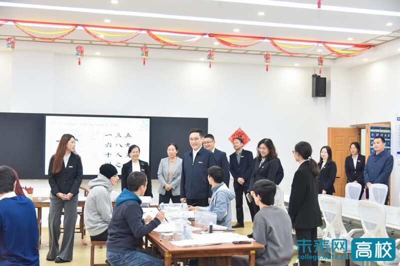 调研期间,厉励深入学院各办公室与教研室,与在岗教师亲切交流。他勉励大家立足本职岗位,锤炼过硬本领,注重因材施教,尽心尽力帮助青年学生成长成才。在国际文化交流中心,厉励走进正在开展教研活动的教师沙龙,与来自马来西亚等国的外籍教师亲切交谈。他指出,唯有深入了解中国历史,方能真正读懂当代中国。河南作为中华民族与中华文明的核心发祥地,素来享有“一部河南史,半部中国史”的美誉。期待各位外籍教师能亲身走进这片中原大地,深度感受其厚重绵长的文化底蕴与独树一帜的地域魅力,以更生动鲜活的方式讲好中国故事,以更精准全面的表述传递河职的育人理念与办学特色。在墨香氤氲的书法教室,厉励驻足观摩,与来自俄罗斯、蒙古、塔吉克斯坦等国的留学生亲切交流。他细致询问同学们在华的生活适应、需求保障与学业规划,勉励大家珍惜在华的宝贵学习机会,用心学好汉语、潜心深研中华优秀传统文化、精心精进专业能力,主动肩负起中外文明交流互鉴的使命,成为传递友谊的友好使者。