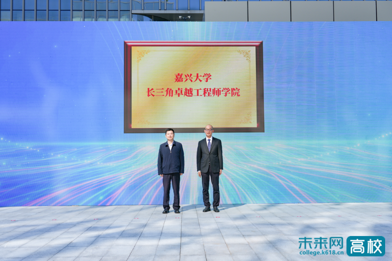 10月29日上午,在浙江长三角高层次人才创新园举行的“星耀南湖·人才港”生态推介会上,嘉兴大学党委书记沈希,嘉兴市政府党组成员、经开区党工委书记、管委会主任章澜共同为嘉兴大学长三角卓越工程师学院揭牌。