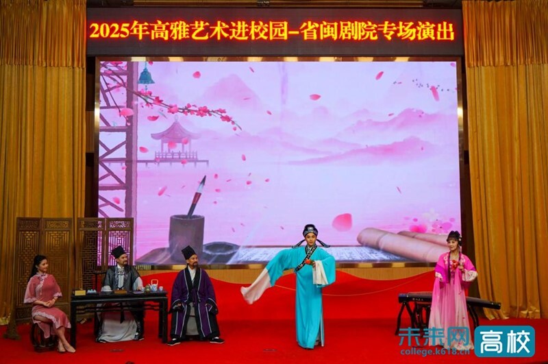 11月6日晚,由福建省文化和旅游厅、福建省教育厅主办,宁德师范学院承办,福建省实验闽剧院演出的高雅艺术进校园活动——闽剧沉浸式戏剧《福“见”儒林》在学校举行。闽剧演员以扎实的表演功底、精湛的艺术技巧,上演一场别开生面的戏曲盛宴,吸引了全校300余名师生到场观看。