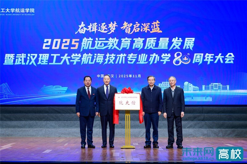 航运学院院长刘克中介绍学院办学情况,教师代表牟军敏教授和学生代表航海技术2022级本科生杨宇航分别发言。会上发布了《武汉理工大学航运学院院史》,并进行武汉理工大学航运学院院史馆揭牌。院史馆的落成与启用,是学院辉煌历史与办学成果的集中呈现,更将成为凝聚师生认同、激发校友爱校荣校情怀、弘扬航运文化的新地标。