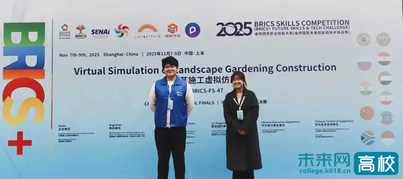 在刚刚落幕的2025金砖国家职业技能大赛园艺施工虚拟仿真赛项国际总决赛中,天津轻工职业技术学院环境艺术设计专业戈天一、陈俊兰团队从全球77支队伍中脱颖而出,勇夺二等奖!