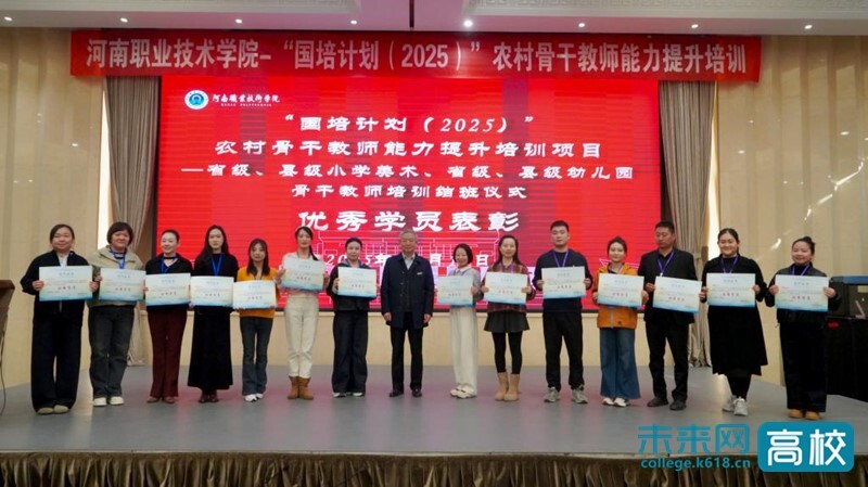 近日,河南职业技术学院承办的“国培计划(2025)”农村骨干教师能力提升培训项目第二期结班仪式在郑州嵩山饭店举行。学校党委委员、副校长李玉峰出席并为学员颁发荣誉证书。来自全省的省级、县级小学美术和幼儿园四个培训班共计200名骨干教师圆满完成研修任务,顺利结业。