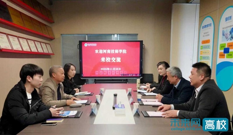 11月26日下午,河南技师学院党委委员、副校长杨伟博一行到河南职业技术学院,围绕深化校际合作、共谋高技能人才培养新路径开展交流研讨。河南职业技术学院党委委员、副校长李玉峰,继续教育学院相关负责人参加交流座谈。