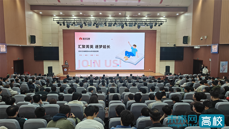 11月28日下午,陕西延长石油(集团)有限责任公司2026届毕业生校园招聘宣讲会在西安石油大学举办。学校学生工作部(处)、各院(系)学生工作主要负责同志、毕业班辅导员,2026届本科生、研究生共计400余人参加会议。