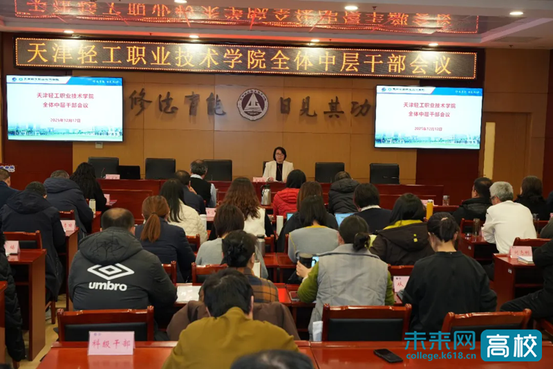 12月12日上午,天津轻工职业技术学院召开全体中层干部会议,全体领导班子成员、全体中层正副职干部、全体实岗锻炼干部及全体内设科级干部参加此次会议。会议由院长办公室李悦副主任主持。