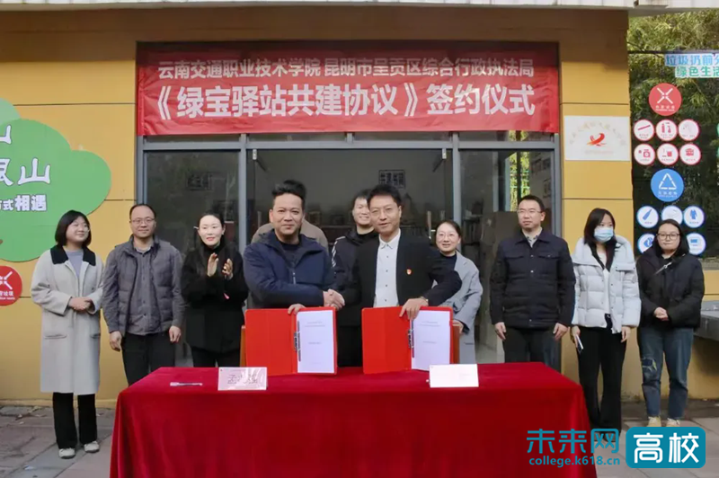 12月24日下午,云南交通职业技术学院与昆明市呈贡区综合行政执法局在“绿宝驿站”举行《绿宝驿站共建协议》签约仪式。学校党委副书记贺斌,呈贡区综合行政执法局局长孟兆强及相关工作负责人,呈贡区有关单位、街道、社区和垃圾分类志愿服务队代表,兄弟高校志愿公益组织和学生组织代表,各学院党委班子成员代表、师生代表出席签约仪式。