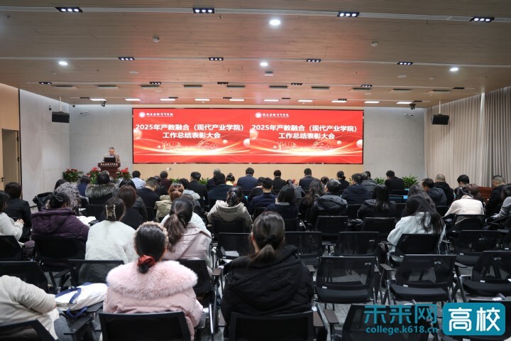 12月26日下午,陕西国际商贸学院2025年产教融合(现代产业学院)工作总结表彰大会召开。本次大会旨在回顾与表彰过去一年的突出成绩,为未来的产教协同发展凝聚力量。学校董事长、校长赵超,副董事长张玉洁,执行校长贾明远,各二级学院院长、书记、科级以上干部以及产教融合中心、教务处、教师发展中心、质量控制与评估中心、学生工作处、招生就业处、科技处等相关职能部门负责人以及受表彰的优秀产融工作者、企业代表、各产业学院业务助理、教师代表参加会议。会议由副校长张富林主持。