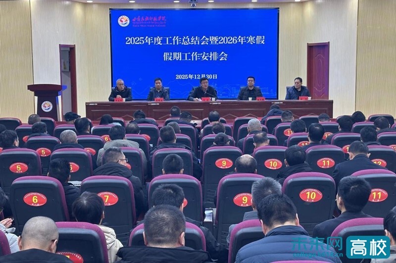 2025年12月30日下午,甘肃民族师范学院召开年度工作总结暨寒假工作安排会议。学校党委书记贡力出席会议并讲话,总结2025年工作,部署2026年重点任务及寒假安排。学校领导及全校副处级以上干部参会。