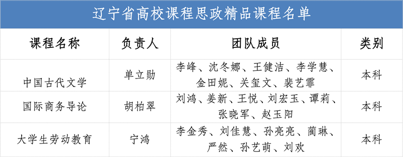 近日,辽宁省教育厅公布了高校课程思政精品课程遴选结果,大连财经学院《中国古代文学》《国际商务导论》《大学生劳动教育》3门课程成功入选。