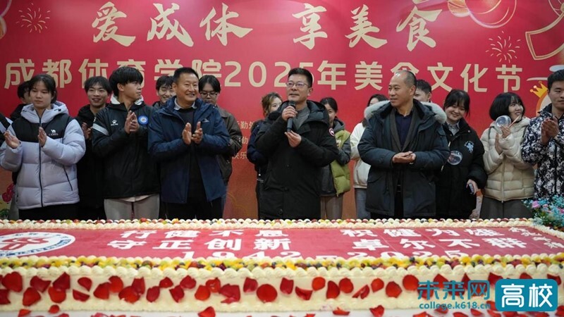 胥万兵在致辞时首先向全校师生致以了诚挚的新年祝福。他指出,美食节既是传承中华饮食文化的盛宴,更是浸润心灵的育人课堂。活动特设集体生日环节,30名近期过生日的学生代表与校领导并肩分切蛋糕,全场合唱生日歌,传递校园温情与学校关怀,浸润每个人心田。现场热闹非凡,南北风味美食齐聚一堂,50余种美食品鉴、6种特色菜品展示与2件创意食材雕塑艺术品相映成趣,让互动活力充盈在氤氲烟火气中。