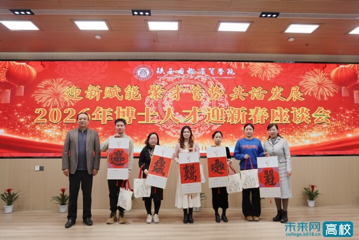 1月6日上午,陕西国际商贸学院召开“迎新赋能 聚才蓄势 共话发展”博士人才迎新春座谈会。学校董事长、校长赵超,副董事长张玉洁,全体校领导,首席专家代表,专职博士,各教学单位负责人及相关职能处室负责人齐聚一堂,共迎佳节、共叙情谊、共话发展。会议由学校党委书记彭虎军主持。