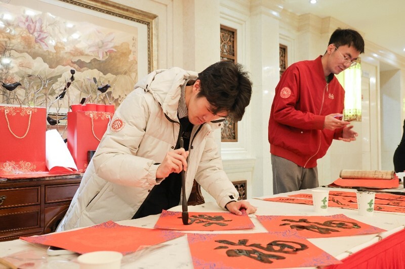 2月6日上午,北京大学举行2026年春节团拜会。团拜会开始前,师生现场挥毫泼墨,为来宾送上“福”字和春联。团拜会现场张灯结彩、暖意融融,洋溢着欢乐祥和的气氛。